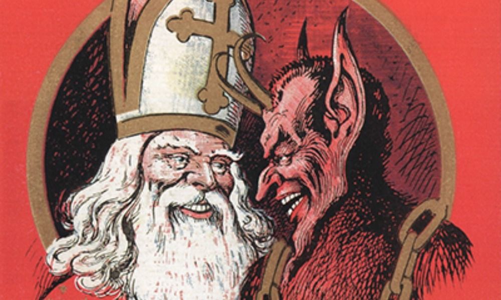 You’re probably vaguely aware of Krampus, right? You might have seen him on a funny little postcard or a cheeky t-shirt, but just so we’re all on the same page: Krampus is a traditional Germanic companion to St. Nicholas, dating back to pre-Christianity midwinter folklore, most likely a holdover from pagan rites that were conveniently assimilated into early Christian celebrations to attract more converts. (This happened A LOT.) Basically, Krampus is the anti-Claus. In these traditions, St. Nicholas doesn't even bother with bad children—Krampus comes for them instead. He's a hairy, horned, satyr-like demon with cloven hooves, often wrapped in chains, carrying bundles of switches to swat at the bad kids before taking them away. And yes, there is a Krampus horror movie, and no, it is not good.