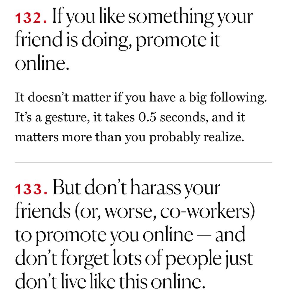 Number 133 is one of the more important things to understand: not everyone is going to want to sign up for your newsletter or YouTube page or anything that requires them to be more active online than they already are. Reminder: the Internet sucks for most people now. My spouse has been off social media for 5+ years now, and while he has sadly missed some of my finest meme-reposts, I don’t expect him to go back onto platforms he doesn’t use or enjoy just to like what I post. He does, however, subscribe to this newsletter... 😎